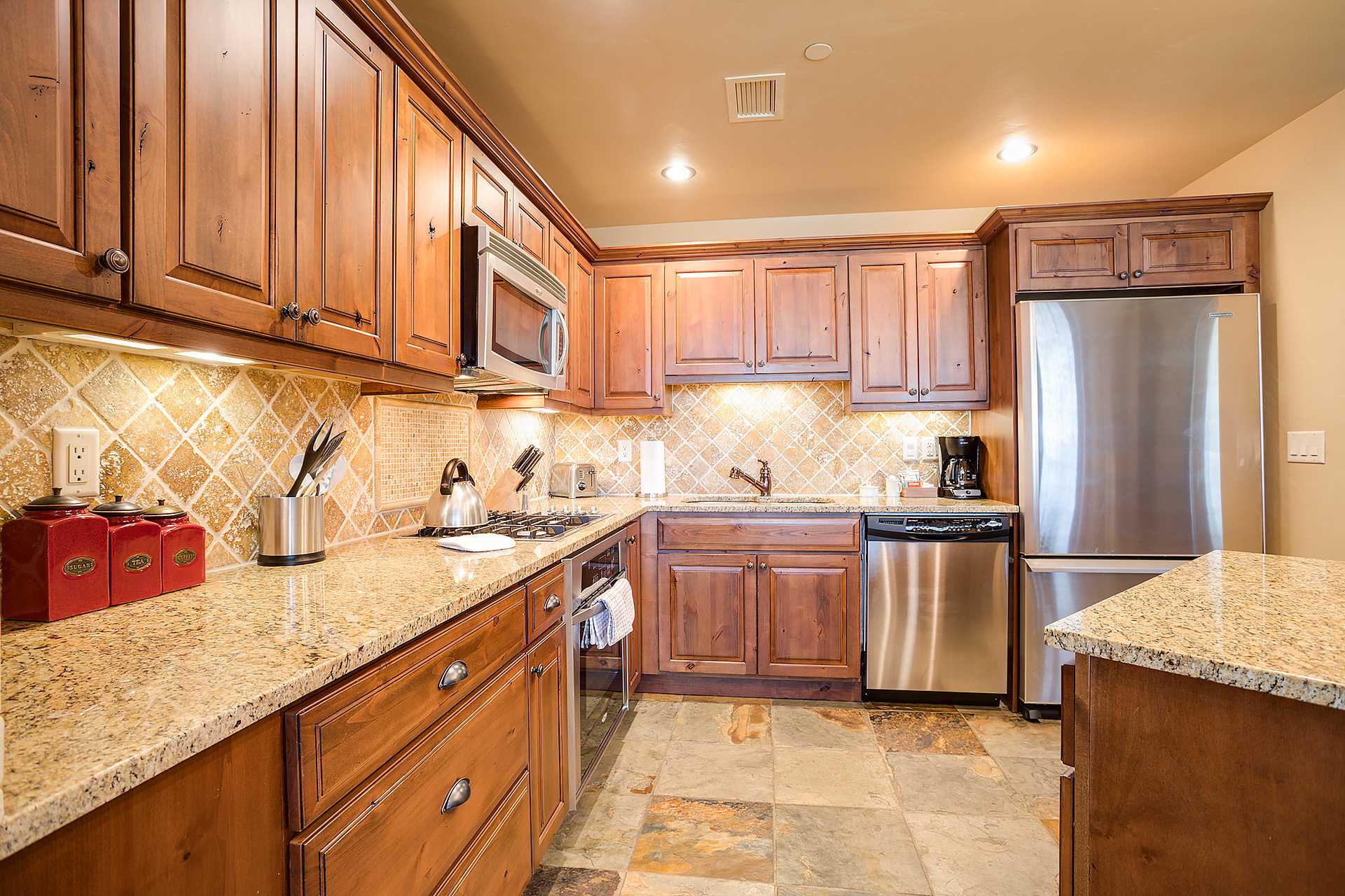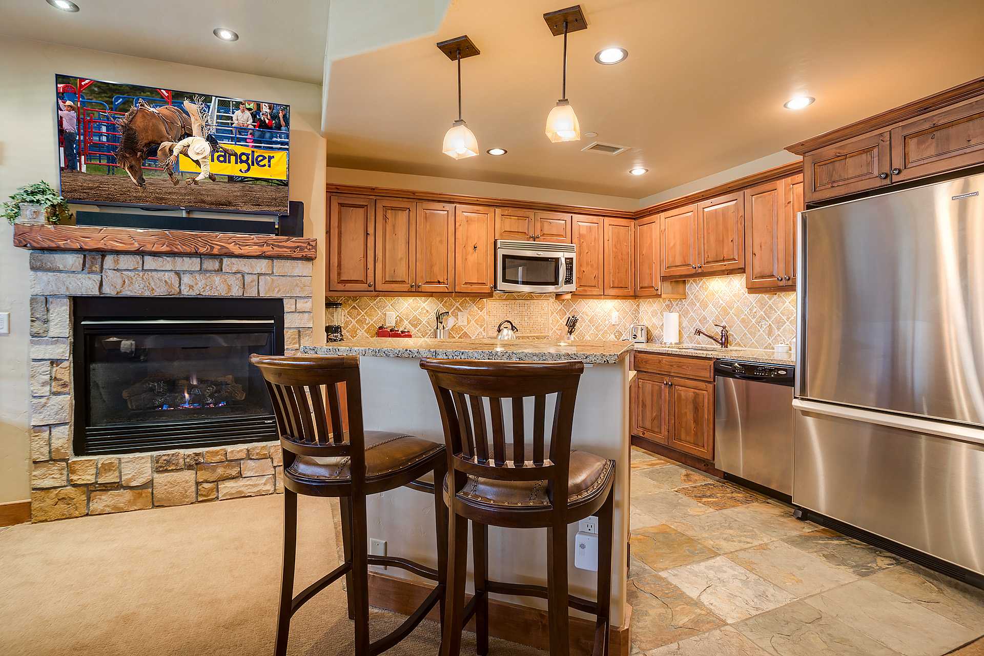 You'll find a fully equipped gourmet kitchen with breakfast bar, slab granite countertops, quality stainless steel appliances, a 4-burner gas cook-top stove and luxurious wood cabinetry. The spacious living and dining area allow you to relax in comfort with the feature gas log fireplace adding ambiance to those cozy evenings spent with family and friends. Our condo enjoys a south-western aspect giving you wonderfully light and sunny accommodation. The condo is ideal for a couple or a small family by utilizing the sleeper sofa. The bathroom has a large, beautiful stall shower, bath products, warm robes and plush towels.